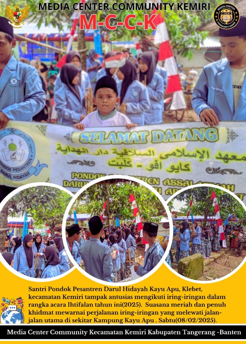 Metrosiar.com-Kab Tangerang-Puluhan santri Pondok Pesantren Darul Hidayah Kayu Apu, Klebet, kecamatan Kemiri tampak antusias mengikuti iring-iringan dalam rangka acara Ihtifalan tahun ini(2025). Suasana meriah dan penuh khidmat mewarnai perjalanan iring-iringan yang melewati jalan-jalan utama di sekitar Kampung Kayu Apu . Sabtu(08/02/2025).