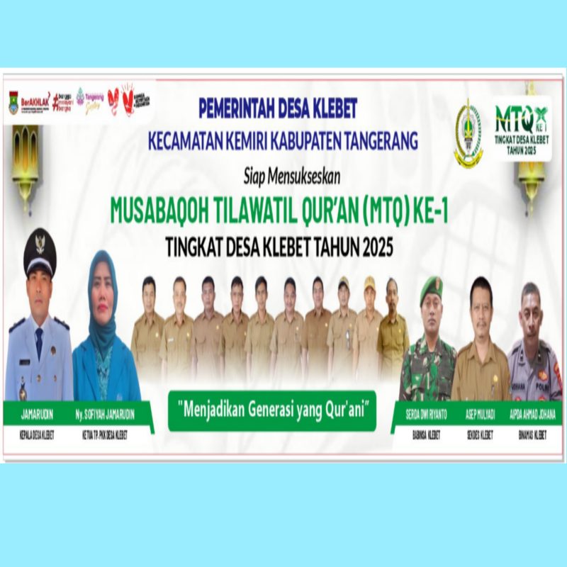 Tangerang – Metrosiar Musabaqah Tilawatil Qur’an (MTQ) Ke-1 tingkat Desa Klebet, Kecamatan Kemiri, Kabupaten Tangerang digelar sebagai upaya memperkuat syiar Al-Qur’an sekaligus menjaring potensi qori dan qoriah muda di lingkungan masyarakat. Kegiatan perdana ini menjadi momentum penting bagi warga Desa Klebet untuk meningkatkan kecintaan terhadap Al-Qur’an melalui berbagai cabang perlombaan yang diikuti peserta dari berbagai RT dan RW.