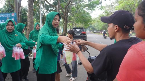 Puluhan anggota TNI dan Persit tampak berdiri di tepi jalan, menyapa pengendara motor hingga sopir angkutan umum yang melintas. Senyum dan sapaan hangat mewarnai aksi berbagi tersebut.