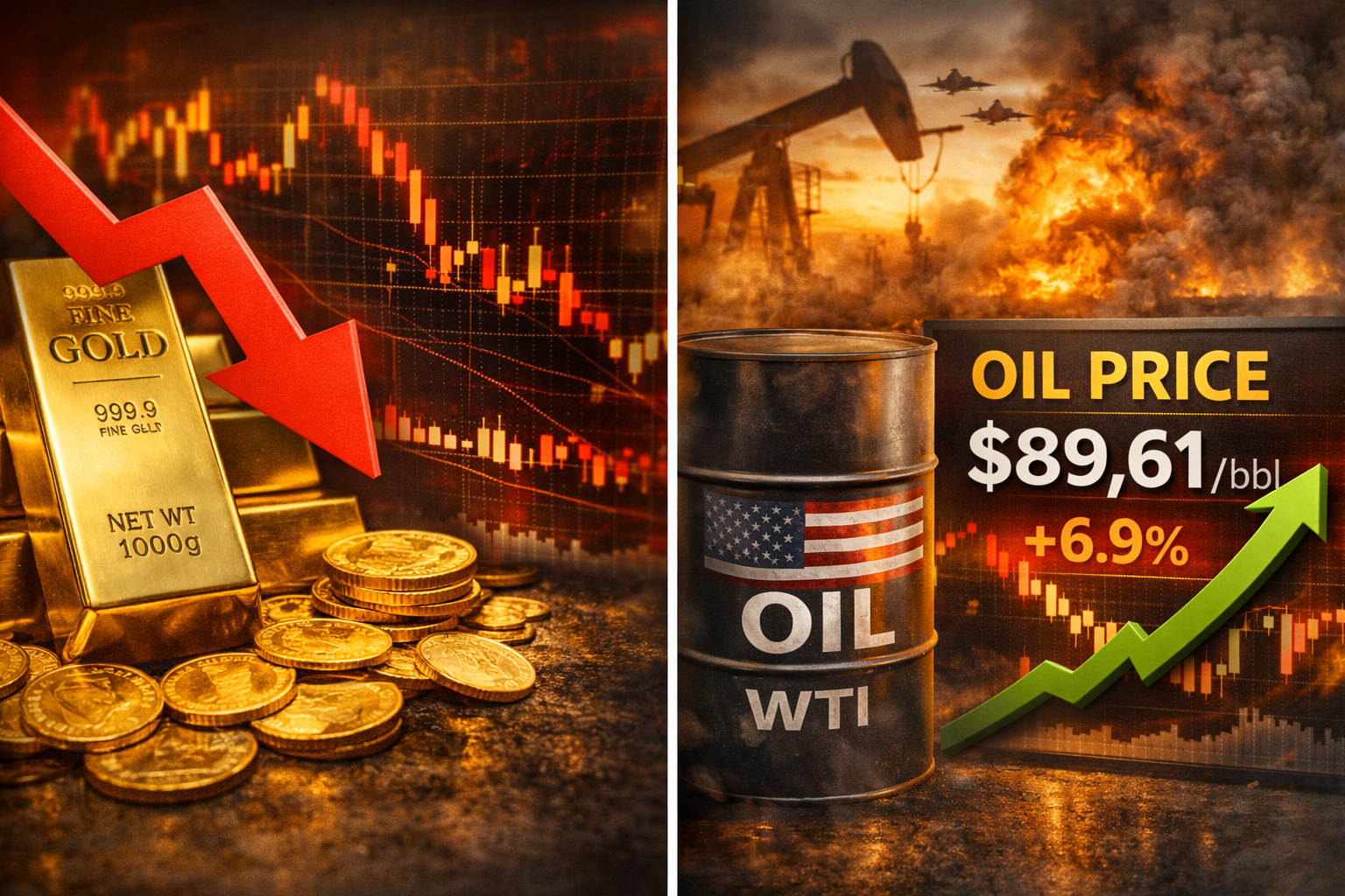 Turunnya harga emas dipicu oleh kembali melonjaknya harga minyak dunia. Lonjakan harga minyak memunculkan kekhawatiran terhadap inflasi yang berpotensi membuat bank sentral Amerika Serikat menahan pemangkasan suku bunga.