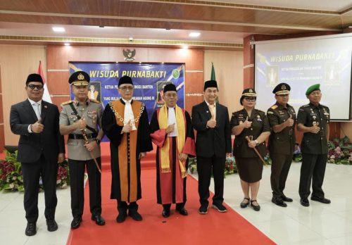 Serang, Metrosiar – Kapolda Banten Irjen Pol Hengki menghadiri Wisuda Purnabakti Ketua Pengadilan Tinggi Banten Dr. H. Suharjono yang digelar di Ruang Sidang Utama Pengadilan Tinggi Banten, Kota Serang, Jumat (30/01).