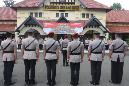 Upacara sertijab berlangsung tertib dan khidmat, diikuti oleh para pejabat utama Polresta Serang Kota, para kapolsek jajaran, serta seluruh personel Polresta Serang Kota.