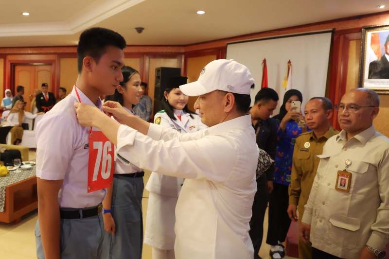 Wakil Gubernur Banten A Dimyati Natakusumah menyematkan nomor peserta kepada salah satu calon anggota Paskibraka. (Dok. Biro Adminprov Banten)