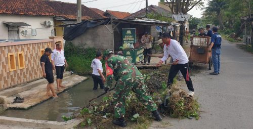 Babinsa bersama Muspika dan masyarakat melakukan pembersihan saluran air dari sampah guna mencegah penyumbatan dan potensi banjir di lingkungan permukiman.