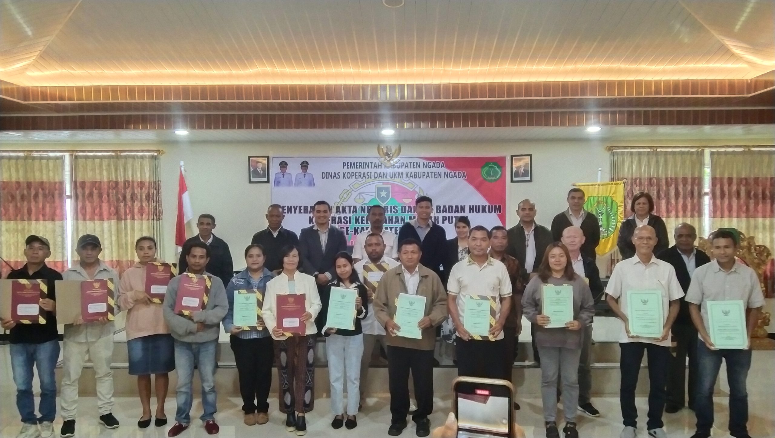 Bajawa-Metrosiar- Wakil Bupati Ngada, Bernadinus Dhey Ngebu secara resmi menyerahkan Akta Notaris dan SK Badan Hukum kepada 16 Koperasi Kelurahan Merah Putih di wilayah Kabupaten Ngada, Rabu (05/12/25) di aula Setda Ngada.
