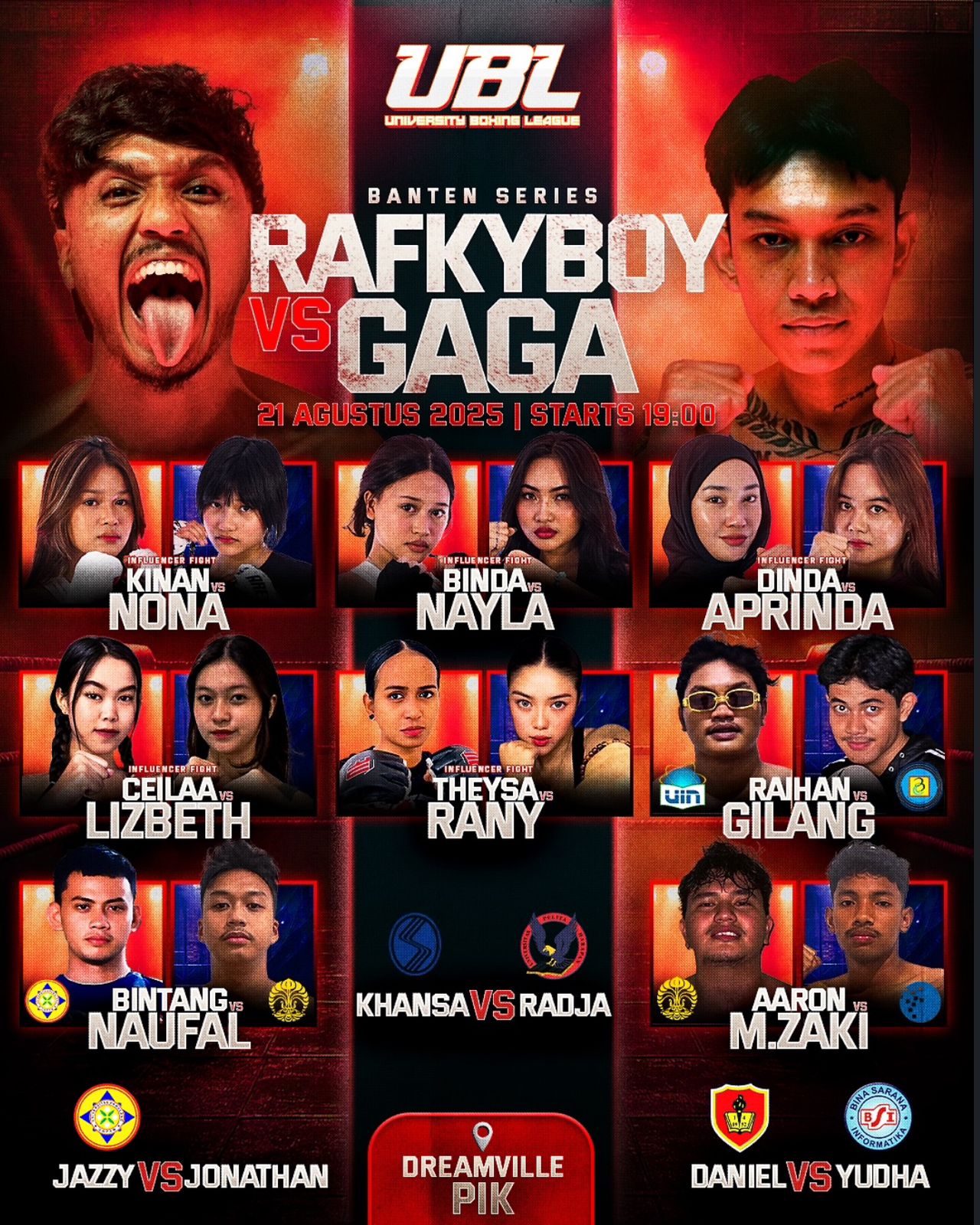 Metrosiar – Sebanyak 30 atlet muda akan menunjukkan kemampuan terbaiknya dalam ajang University Boxing League (UBL) Vol 3 Banten 2025. Pertandingan seru ini digelar pada Kamis (21/8/2025) pukul 19.00 WIB di Dreamville, PIK 2, Kosambi, Kabupaten Tangerang.